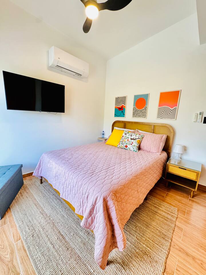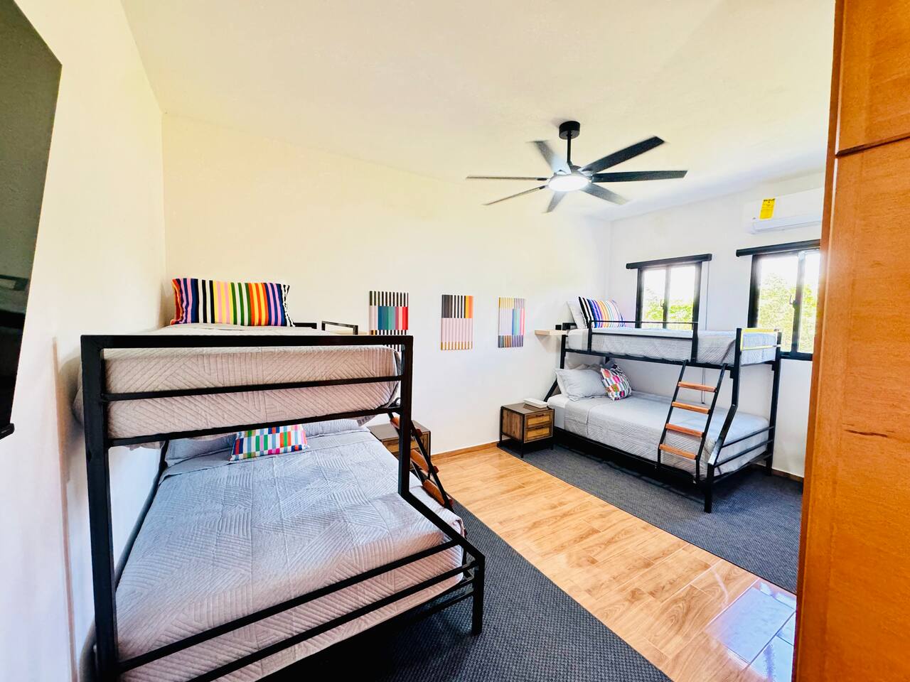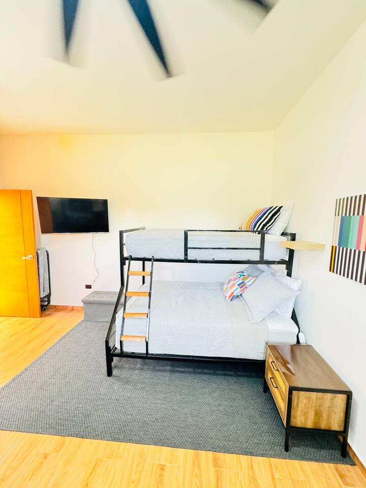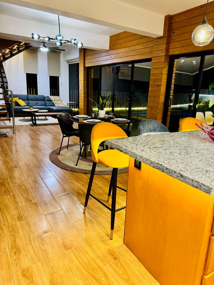 🌻 Sunflower Villa blends mountain tranquility with modern comfort in the lush highlands of Jarabacoa. Just 5 min from Alta Vista Restaurant, this gated retreat sleeps up to 10 guests in 3 air-conditioned bedrooms, each with a private bathroom. 🏊♂️ Swim in the heated pool, 🍹 sip cocktails on the rooftop terrace, enjoy 360° views, 🌄 or gather for movie nights and karaoke in the Spanish-style terrace under starry skies and fresh mountain air. Perfect for families, friends, and nature lovers.